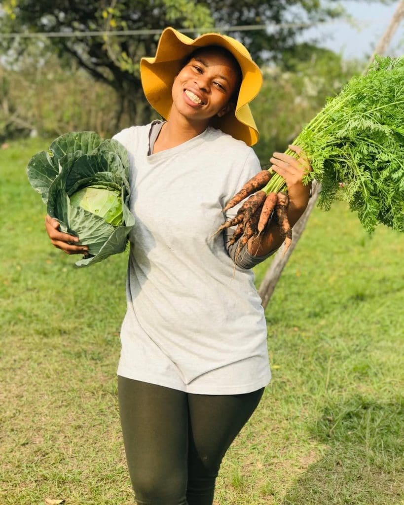Umnikazi we-AgriGlam Farm uNksz uSphindile Xulu, oneminyaka ewu-29, utshala ispinashi, iklabishi, u-anyanisi, u-green pepper, ukherothi nopelepele uqinisekisa ukuthi imindeni ithola ukudla okunomsoco okungabizi.